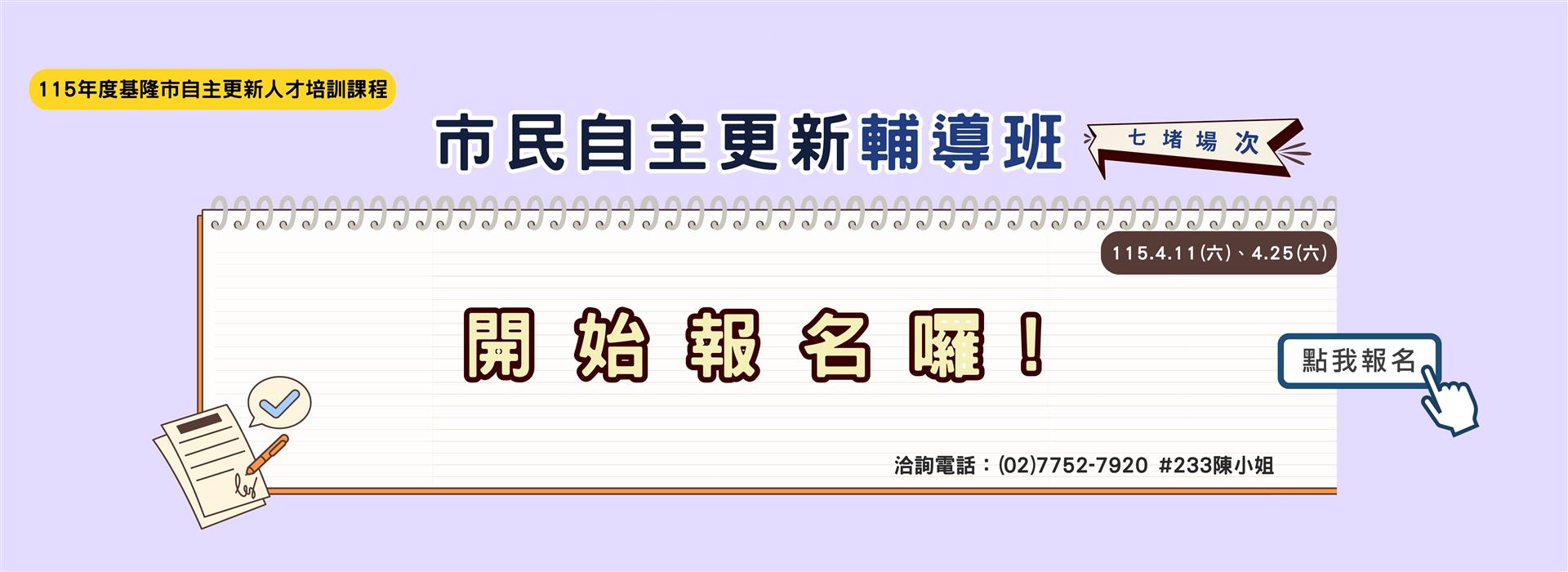 【課程報名】115年度基隆市政府自主更新人才培訓課程-市民自主更新輔導班(七堵場次)